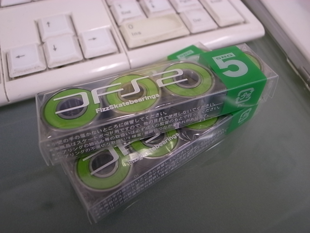 でさ、FIZZのDFSが新しくなりました。グリーンのシールド、ABEC5クラスで1900円+TAXの価格据え置き。コンプリートセットにも組み込めますのでお試しアレ。