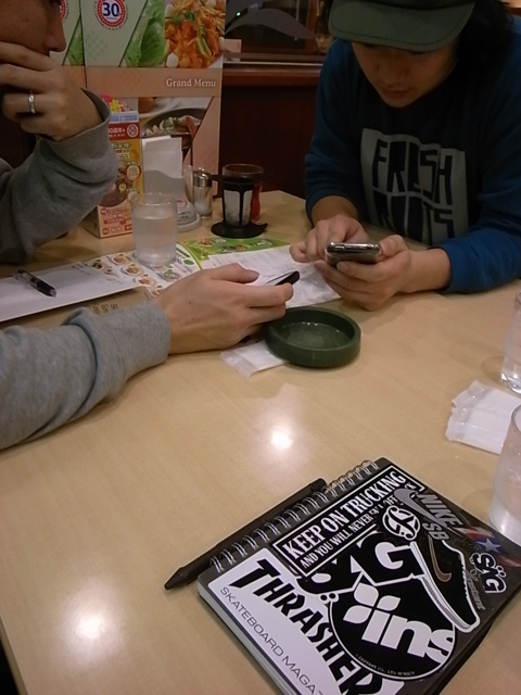 先日、YSKとwatchoと打ち合わせに。google-phone vs iphoneの戦い。いや戦ってない。ノムさんはinstantsサイトのシステム作ってくれているサイバー職人、またはリビングデッド職人。わちょーさんはinstantsサイトのデザイン&アートディレクターであります。二人ともスケートはバリ上手いです。