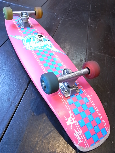 そしてこちらは吉祥寺ストアのご近所さん、PARCOに新しく出来たadidas originals shopのスタッフ、ハルナちゃんのクルーズデッキ。これで休憩のときとかプッシュで遊びに来てくれる。さすがだ。女子にピンクのZIPZINGERっていいじゃんね。このカラー定番にするべきだ。このデッキのサイズは7.125ってかなり小さめに感じるかと思うけど、長さがあるからちゃんとしっかり乗れるのよね。クルーズデッキって気楽に街を流せるのもあって、スケートボードに乗りなれている人だけじゃなくて女性や大人の移動道具にもいいと思う。だって車じゃなくても最近の街はチャリで行っても駐輪所に止めないとすぐに撤去されちゃうしさ。その点クルーズデッキならかなり気軽よ。しゅしゅーっとプッシュして持ち歩けばいいんだもんね。そういえば最近電車でクルーズもってる人結構お見かけします。もうじっと見てるもんだから意識させちゃったりして。だってウィールとかベアリングとか気になるじゃん。電車で見かけるってことはやっぱり家から駅までと駅から目的地までの移動をプッシュすること。まれに終電対策ってこともあるでしょう。そうやって持ち歩けて目的に合わせて使えるのもクルーズデッキならでは。「ちょっと距離があるからスケートボードは・・」っていうのも乗ってみるとかなりの距離が楽に移動できることに気がつきます。ちょっと前のエントリーでありますが、仲間たちで「下町クルーズ食い倒れツアー」をした時は、移動距離は18kmくらいありましたがまったくストレスありませんでしたから。翌日も珍しく大丈夫でした。
