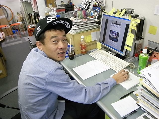 そしてヨシマサくんも遊びに来たよ。来年のインタースタイルで発表されるであろうサンプルたちの一部をチェックさせていただきました。これまた楽しみですね。スケートボードがいろんなシーン、いろんなマーケットに飛び火して、また新たなムーブメントを生み出すきっかけになるといいですね。今回もいろんなお土産を頂きました。いつもありがとうございます!
