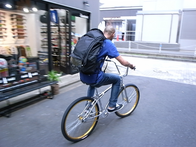 そして「なんかグリップが気に入らねーなー、ちょっと原宿行ってくる!」って吉祥寺から普通に旅立って行きました。その後は地元の東大島まで踏んで帰るのでしょうから、この日の移動距離はハンパないはず。でもぜんぜん軽い踏み出しでした。バッグには交換した部品がパンパンに詰まっております。