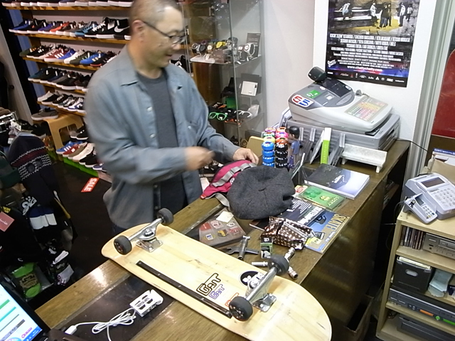 浦安の夜にはディックマンが遊びに来た。ディックマンはね、日本のスケートシーンがまだなんの形も無いときに、ストリートスケートシーンを作り上げてきた第一人者です。それまでのスケートボードとはまったく異なる「ストリートスケート」というシーンはOu3ら先駆者たちから広まって原宿・上野の歩行者天国でスポットライトを浴びるのです。その当時のプロライダー達が僕の憧れであり仲間たち。ディックマンにアキラ、ジェシー、マーちゃん、門馬、おっちのMAXMOTION&上野ムラスポクルーに是ちゃん、サトシ、芳文、ダイコン、タクちゃん、日野ちゃん、らの原宿STORMYクルー達。おっと、なんだか楽しくなって来たぞ。クリリンにアゴローちゃんにキャバにはっちゃきにかっくん&ヒロに張替ちゃんにカトちゃんにワタルに絵描きさんにミッチに、なんて色々思い出してたら夢想家になっちゃうよ。仕事できないな。もうやめよ。ま、そういうディックマンがショップに遊びに来てくれるだけで軽くアガってしまうのね。そして装着するブッシュを一緒に悩めるのがまたうれしい。エームスのVHSまた見よう。そうそう。ディックマンに教えてもらったYOUTUBEの昔のコンテストとか激熱いのあります。いつかまた。
