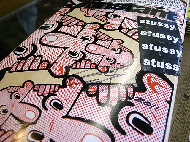 そして久々にローカル親父仲間のモロさんが遊びに来た。積もる話しもいろいろありますが、モロさんに見せてもらったこのデッキ。先日来日していたERIC ELMSにサインもらってるからね。さすがだ。しかも作品一点ご購入したっぽい。かなりジェラシー。INDYとかスクリーミングハンドとかはすでに完売だったようですが、僕はBLACKFLAGのとかDKのとか欲しかった。