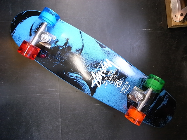 そのモロさんと一緒に遊びに来ていただきましたのが始めましての酒井さん。stussyチャプトを何店かやってる働き盛りの酒井さん。ここ最近リリースされたstussyのクルーズデッキの足回りを組みに来てくれました。このサイズいいね。王道ZIPZINGERのモウルドに近い感じで乗りやすい上に攻めやすい。そういうデッキって探すと案外少ないのよね。グラフィックの感じはやはりstussyっぽいというかもうあのロゴが入ると独自のstussyテイストになってしまうという不思議。カッコいい。
