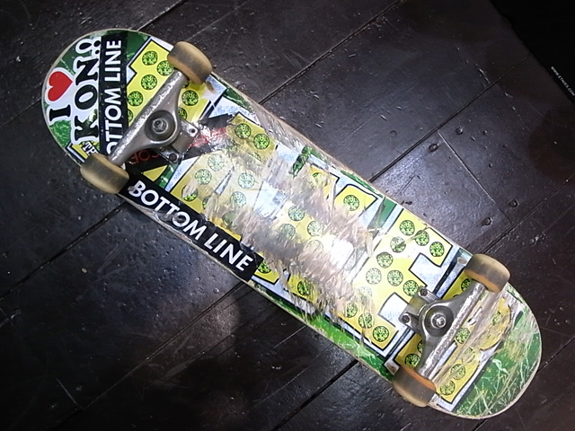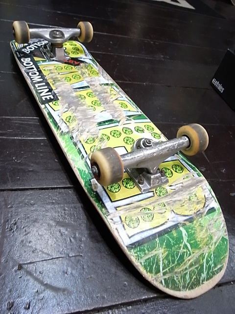 ギンペイはそろそろチェック出来る機会も増えてくると思います。arukuna_tvやFREE-LYの作品でもフューチャーされてるし、これからいくぜ全国区。ハワイでケントともスケートしてたみたいでやっぱりいつも最終的に感じる不思議なご縁。ギンペイは上京して1人暮らしでスケートライフを邁進しております。タイプ的には珍しいハンマー野郎。いい突っ込み見せるんです。ギンペイは伝説ホルダーで、都内某所の有名なハンドレールがあるんだけど、そのレールのキンク部分をスラムでへし折りました。esで来日したマクランクが「キンクが嫌だ」って言ってやらなかったレールね。あそこ溶接だったんだね。かなりの勢いからのヒップドロップだから相当のパワーが一点に。折れたキンクは部屋に飾ってあるそうです。うふふ。トラックはINDEPENDENTの139STD、ウィールはこれはSPITFIREかな。かなり使い込んでます。ヤングガンズはやっぱりパーツはギリギリまで使いますよね。僕もそうでした。今有名なプロライダー達もみんなそうでした。そこに原点があります。