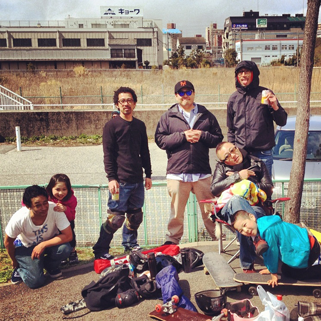 そしてそしてディックマンの友達がスクールに参加してくれて、タイミング合わせてディックマンが誘ってくれたT19のアキラやワカさんも来てくれた。RAD龍も一緒に80's面子でかなりアガってしまいました。上野のホコテン時代は上野行くとかならずアキラに会いました。浦安に昔ちょっとだけ存在したスーパー屋上のミニランプでもアキラにはよく会いました。ワカさんも何年ぶりだろう。ひとり感動。ディックマンありがとう。やっぱりスケートボードはすばらしい。