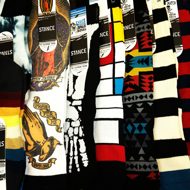 そして浦安、吉祥寺どちらのストアにもクリス・コールやリザキン先輩をサポートするSOCKSメーカー「STANCE」が入荷しております。ハイソックスもアンクル丈もシューズ履くと見えなくなる丈のモデルもいろいろあって、厚さも色々あってクールマックス素材を使ってるのもあったりしてちょっと注目のソックスブランド。色々あるのでぜひ実物を見に来てね。