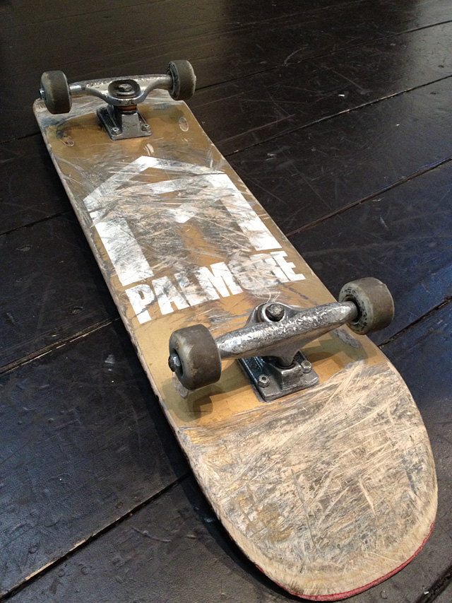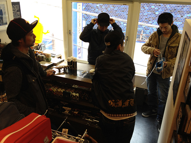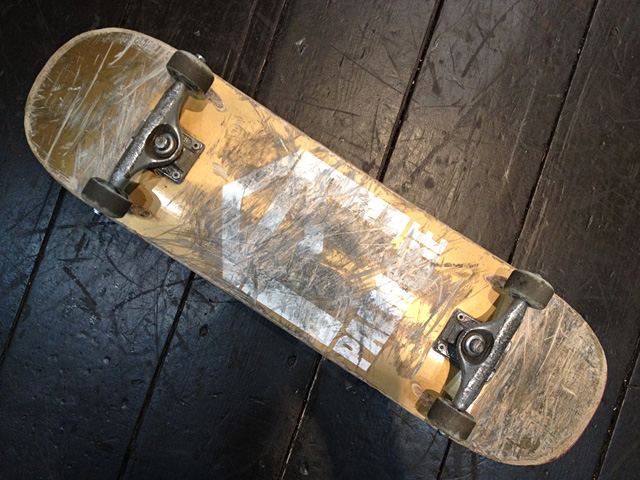 デッキを換えたショウタのデッキの交換前。ショウタはね滑ってるの見てると「乗れてる感」がすごいね。ガンガンプッシュしてどっかり突っ込んでスパッとメイクする感じね。あと昨日初めてランプの生ライディング見たけどハンパないね。乗れてる度高い。instantsのウェルカム映像見てもらえるとわかるかと思いますが、とにかく前に前にのスタイルであります。あまりにスピード早くてランプからすっ飛んでヒザ殴打してますが、それでも乗れてる度すごいわかる。デッキはこちらのSK8MAFIA。もう最近はずっとSK8MAFIA乗ってます。今回のPARMOREは8.25インチです。やはり最先端のテダレ達はこのサイズ乗ってるの多いよね。僕の近いライダーでも、高橋ケント、吉武アキラ、そしてこの早瀬ショウタが8.25。ちょっと前では考えられないことであります。そう考えるとやはりスケートシーンは日進月歩で思ったよりも早いスピードで常に変化し続けているということです。僕なんかもうすっかりおじさんなのでそういう変化にすぐに乗れはしませんが、ショップに立つ身としては常に新しい流れに敏感でいたいと思っております。僕の周りのみんなが先生。