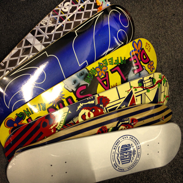 そして待っていた方も多いT19の新作デッキがフルラインナップであります。いつも思うさすがのグラフィック。シンゴちゃんのDELASHINGOも素敵ですが、個人的には7STARSでデザインワーク「PINS」の新色にグッときました。青バージョン素敵。前回のカラーがタバコサンバーストっぽいテイストで完全にビンテージギターをイメージしておりましたが、今回のブルーは新しいメーカーのイケイケギターっぽいイメージありますね。それとやや大きめのクルーザーも来ております。WEBストアには順を追ってご紹介しますが、気になる方はお電話で詳細を!