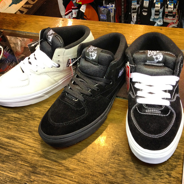 こちらもまたオーセンティックな人気シューズが入荷です。一番人気の黒/白に再度復活を果たした黒/黒。そしてハーフキャブ20周年記念カラーとして登場したのはホワイトであります。どれもいいね。みんな一度は履いたことある名作だと思います。