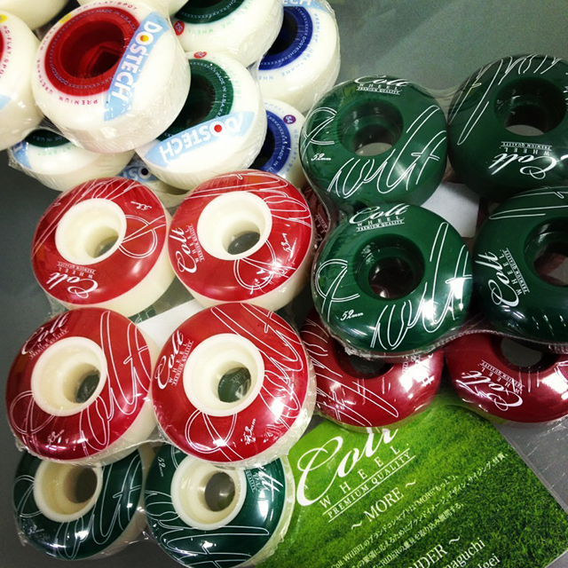 でね、ショップには続々と春夏の新作アイテムが入荷しております。今回はこちら。instants 赤熊寛敬プロデュースのDOSTECHのD-CORE新作と長野の山口くんプロデュースのColtという新しいウィールブランドが全モデル入荷しております。とても高品質なウレタンで究極にパンクし難いクオリティー。ショップではよくウィールのメーカーやモデルによる違いを聞かれることが多いです。メーカーやモデルによって値段も色々だし、品質とコスパがかなり気になるご様子。そりゃそうだよね。僕もそうだし。で、最近の傾向としてはBONES STF、Darkstar、Dostechと「NON-FLAT SPOT」を謳ったウィールはどれも人気です。やっぱり買ってすぐパンクしちゃうと軽く落ちるからさ。個人的にはinstantロゴウィールもおすすめではありますが、そういう人気ブランドやSPITFIREのようなすごく色々なモデルやシリーズがあるメーカーがよく売れているようです。ドメスティックのSTRUSHや通好みのブランドも色々取り揃えてますのでウィールのページからチェックしてみてください。