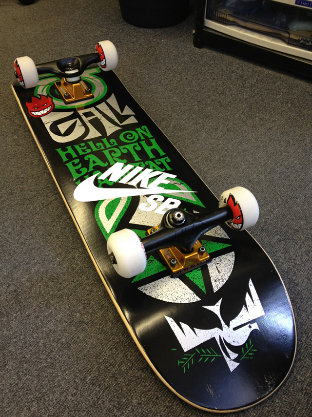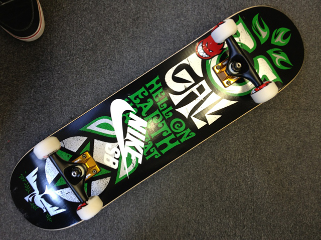 またある日、浦安ストア開店したらすぐにデカイ人がやってきた。よく見てみたらNIKEのTakashi Hosokawaでありますよ。やはり春になると滑りたくなる人いっぱいだ。スケートボードはショップを開けてから17年の経験だと、春に大増殖、夏に選別、秋に熟成、冬に冬眠、という流れが多いね。春は新しい友達がスケートボードやってたりして一緒に滑りたくなって始めちゃう人、また雑誌やテレビでチラ見したスケートボードを勢いで買っちゃって乗ってみる人、そしてお祝いなどで新しいコンプリートをゲットした先輩のお古をもらって滑り始める人、などなど。ま、いろんな理由があるでしょうかとにかく今がスケートボードをはじめる大チャンス。僕はぜんぜん気にしないでいいと思うけど、はじめたての人は「あんまり上手くないので上手い人がいるところで滑り難い」って思う人が多いのよ。本当にそんなの気にしないでいいのよ。自分が楽しめるように練習しましょう。もちろん初めて行くパークやローカルスポットにはローカルルールがあったり、誰かがランプを滑っている時には次の人は待ってる、とか自分のゴミは持ち帰る、とか色々なルールやマナーが存在します。でもこの時期は自分と同じはじめたての人がいっぱい居るからかなり心強いでしょ?プロライダーだって最初は初心者なんですから、まずはスポットに着いたら焦って滑らずにみんながどうやって動いてるかをちょっと見てみる。ある場所は一方通行のようになってたり、横切れない場所があるかもしれない。空いてると思ったら順番を待ってたりすることもあるので、周りの様子を最初はちょっと見ながら滑るのがいいよ。で、わかればもう思い切り自分と闘ってどんどん自分越えをしちゃってください。かげながら応援しております。