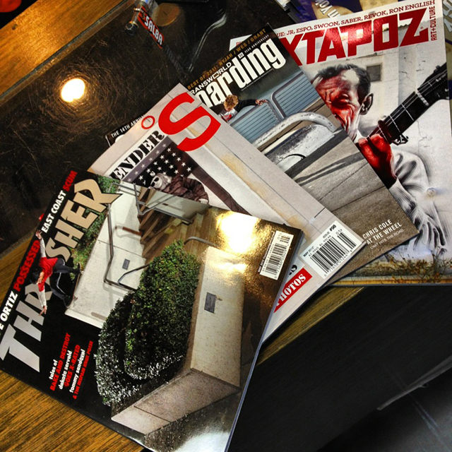 ショップには僕らの教科書いっぱい届いてますよ。今回はTWJのブセニッツのカバーがいいっすね。サトルも吠えてましたがこの時代、カーブトリックでカバー飾れる人はそんなにいない。特集もシネフォトグラファーだしね。MAGはBONES BRIGADE特集だったりしてやっぱりついつい買ってしまうマガジンであります。