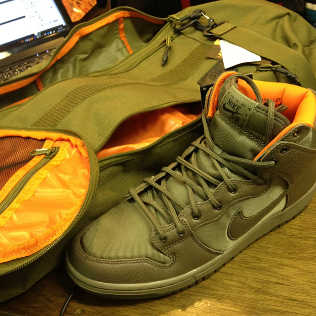 そしてついにTALONがリリースとなりました。おかげさまでご好評をいただいておりまして、instant WEBストアはオリーブ完売。マジでうれしいっす。ありがとうございます。お手元に届いた方はぜひその機能をお試し下さい。僕からの使用上のアドバイスとして、クルクルっと巻くときにはちょい細めに巻くと調子いいっす。あとすっきり見せたいときには背中向きに巻き、出し入れ頻繁の時には手前に巻くのが僕流。なんだそりゃ。今回は素材もガッチリしたのを使ったのと補強もされているので、使いこんでもいい味出てくれるかと思います。僕もオリーブはゲットできずでしたのでちょっと探してみよ!で、アガッタのは同じ日にリリースになったDUNK HI SB PREMIUNのKOZIKがなんと同じ軍ものインスパイア。ぶっちゃけMA-1。いやいやググーッときましたね。KOZIKも行っちゃうぞ。うふふ。