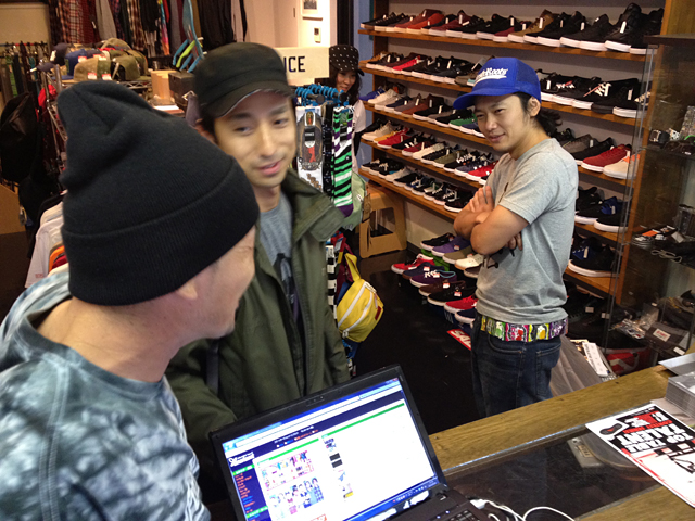 でね、やっぱりこのシーズンはスケートボーダーがわさわさしてくるのでありますよ。先日、浦安ではまったく約束なしにクマ、マサ、ワッチョのinstantsが鉢合わせ。ご縁があるね。さすがだ。会えばスケートの話しばかりではありますが、そういうのがいいね。ショップはそういう情報交換の場でありたい。ライダー同士じゃなくてもさ、初めてコンプリート揃える人に別のお客さんがパーツ選びのアドバイスをしてたり、バックヤードが忙しいとライダーがカウンターに立っててお客さんのセッティングの相談に乗ってたり、ま、インスタントはずっとそういうショップです。