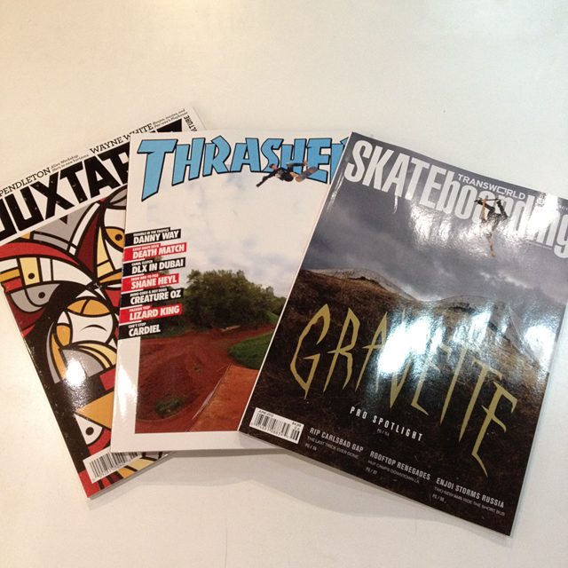 そして僕らの教科書の最新号も到着しておりますよ。毎号毎号楽しみなクオリティー。スケートビデオもWEBチェックも大好きではありますが、僕はやっぱりスケートマガジンが大好きだ。RAD龍やMORROWさんも「紙の匂い」って言ってましたが、僕もやはりマガジンのインクの匂いに弱いです。あれ嗅ぐとかなりの確率で買っちゃいます。雑誌は作るの大変だからねー。僕は昔から写真の一枚一枚を「どこにストロボ置いてるか」とか「シャッタースピードや絞りはどんな感じか」とか、考えながら見ちゃうので一冊読むのにすっごく時間かかります。完全に元とってます。いまだとレタッチの入れ方とかも気になりますね。いろんな個性をいろんな方法で表現できる世の中になって便利であり即物的にはなりましたが、スケートボードの楽しさとこだわりの本質はやはりこういうスケートマガジンに凝縮されていると思ってます。