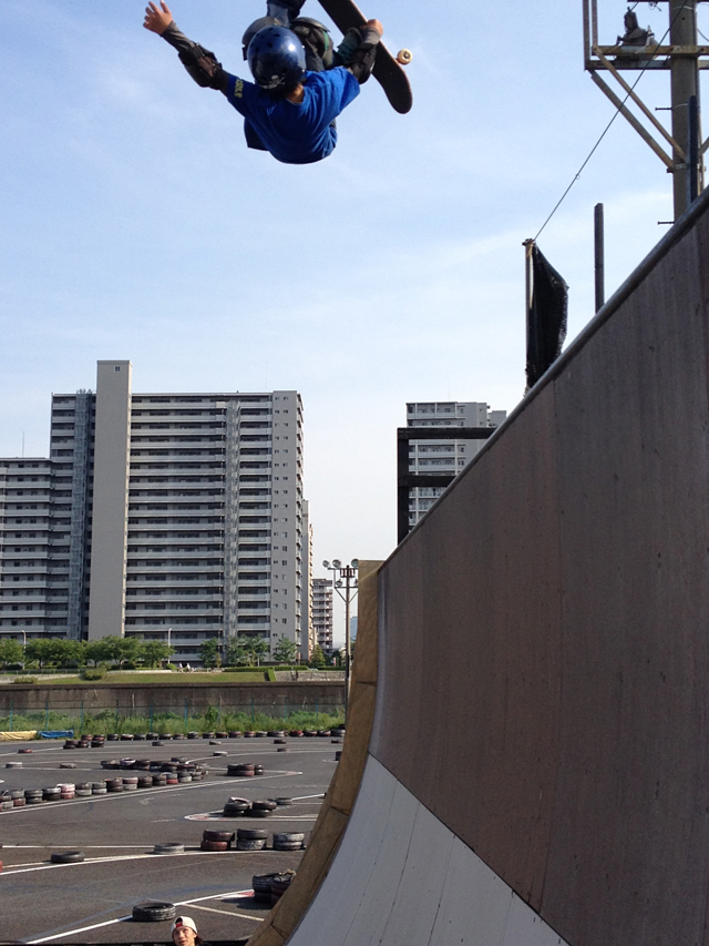 コンテストは楽しかったです。僕はプロツアーのパークスタイル予選、準決勝、決勝のMCをやらせてもらったのですが、まず面子がかなり年齢層が広い。14歳くらいから30代まで実に様々。僕はAJSAのMCをやらせてもらってからもう16年くらい経つので、昔は九州のヤングガンだった立本がすっかりみんなをひっぱる重鎮になってたり、淳之介がスタイル出しまくりのトリックを見せてくれたりするのがすごくうれしいのね。進化と成長を感じる。コンテストの結果はミズモノではありますが、佐川くんに才くんが同じ表彰台にいることがかなりシーンの成熟を感じます。