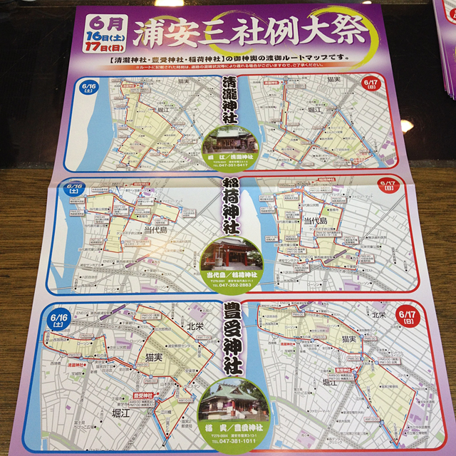 先週末は浦安は4年に一度の大祭でありました。浦安ではこの日のために、祭りが終わると「祭り積立て」をする人が多く、祭りの直前になると満期を向けて銀行の手続きが混み合うそうです。4年間積み立てして祭りの前に現金にして、奉納に全部の神社を回る人や、お神酒やいろんな奉納品を各ルートごとに配る人、ルート上の商店ではお神輿の担ぎ手への飲み物や食べ物を用意したりして、本当に市をあげての大きなお祭りになるのであります。詳しくはローカル達に聞いてみて。そして4年後にまたみんなで楽しめるといいですね。浦安ストアのお隣の古着屋MellowのOGGGYはハッピとか買って仕事終わりにインスタントで着替えて急いで出発しましたから。自分の店で着替えないのがいいね。