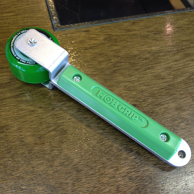 そしてこちら。MOBグリップの新兵器。はい、問題です。この武器はなにをするものでしょうか?ちっちっちっち。はい終了。答えはね、デッキテープを貼るときに空気を抜く道具です。いや、空気を抜くっていうかよりデッキにデッキテープがくっつくようにする武器ね。MOBは空気が抜けるようにシートに穴が開いているのでこういう武器があればだれでもピタッと貼れますよ。デッキテープをきれいにカットするのはちょっと経験要りますが、乗っちゃえばすぐにズクズクになるので何度か練習して鍛えてみてください。かならず誰でもきれいに貼れます。インスタントではデッキをご注文の際に特にご指定がない場合はデッキテープは貼らずに発送しております。もちろんばっちりと貼って発送することも無料にて承っておりますのでご注文時にフォームにチェックして送信してください。アパレルやシューズと合わせてご注文の際にはメッセージ欄に「貼って」とか記入してもらえれば貼って送りますからね。ヨロシクお願いします。