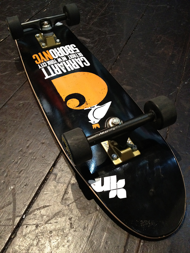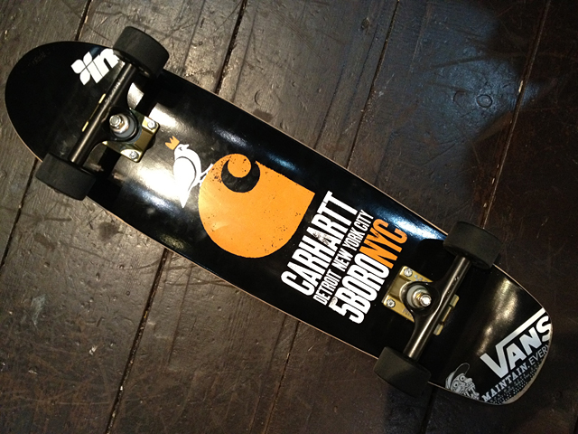 そしてBMX界では有名なキョウヘイくんがクルーズセットを組みました。事前に色々チェックして来てくれたみたいで実にスムーズにデッキやパーツのチョイスが進み、取り寄せしたりもして納得の一本を組んでいきました。これで駅から学校までのダルい道のりも超楽しい毎日に。より雨が嫌いになることでしょう。ま、それはいいとして、デッキはこちらのCARHARTT×5BORO。サイズ感もいいね。個人的にはこのグラフィックがすげえカッコいいと思う。なんかクルーズってセメントデッキよりもサイズやセッティングの選択肢が広い。デッキも7.25幅でも9.0幅でもクルーズという目的は達成できるしそれぞれの利点もスタイルもある。だからこそより自分が納得できるチョイスをして乗ること、いや持っているだけでグッと来ちゃうコンプリートセットを組み上げたいですね。キョウヘイくんはやはりBMXで経てる男ですから、そういうことを説明せずにすべて身体でわかっておりました。さすがだ。