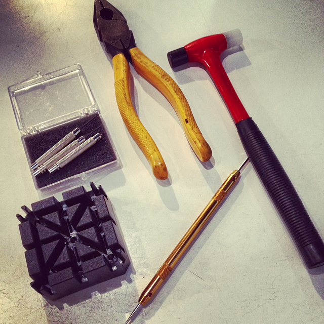 吉祥寺ストアでご購入いただきましたHOMEのベルト調整をしました。吉祥寺ストアは隣がヨドバシなんでこういう工具がすぐ揃う。自分のはもちろんいつも自分でやってるし、実は細かい作業が好きだってことに気が付きました。NIXONもHOMEもVESTALもご購入いただきました時計はすべてベルト調整はやらせていただきます。