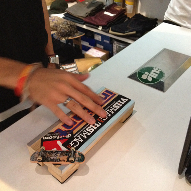吉祥寺ストアではBMXレーサーでありスケートボーダーのタクちゃんからサトルがストレッチを伝授してもらっておりました。滑る前には小一時間ストレッチするんだって。やっぱり楽しみ方をわかってらっしゃる。身体が資本ですからね。滑って楽しいのも健康な身体があるからこそ。やるときはやるけどそういうケアをしていたのとそうでないのとは結果も変わってくると思います。やったものはわかるはず。僕もいまだにあの「骨折した翌日のなんか普通の生活が変わってしまった感」はたまに思い出します。どんな変化もあるときに突然やってくる。兆しとかもあるケースがありますが、基本的には変化はいつも突然です。その時に備えるってよりもそういう変化にすぐに合わせられるようになりたいわ。やっぱり目の前のことに一生懸命でいたい。難しいけど。