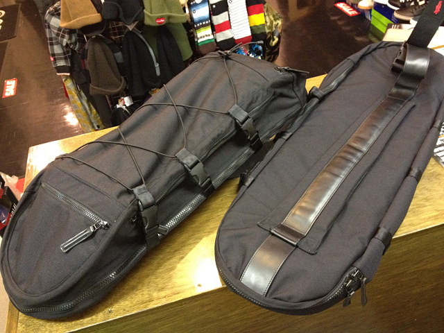 そしてショップには新しいスケートボード専用バッグが到着しました。ドレちゃんがプロデュースする「shopper」というNEWブランドで、こちらのデッキバッグは3グレードのリリースがあります。こちらはスケートボードショップに向けてリリースされたデッキバッグで、実にふんだんに高級レザーが使われ、保冷機能のあるポケットや脱いだジャケットやシューズを止められるドローコードなど、実際に滑る人の思いに手が届く機能とデザイン。ドレちゃんも駒沢で超滑ってるみたいだしね。トップグレードはセレブが集まる世界の有名なセレクトショップ向けに、最高級のレザーをあしらいオリジナルのスタッズがガンガン埋め込まれている超とんがったデッキバッグがリリース予定。こちらは84.000円(予価)。スケートボードショップに並ぶこちらのモデルは25.750円となっております。アンテナに引っかかった方はぜひ実物をチェックして頂きたい。浦安ストアにスタンバっております。