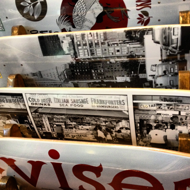 そして気になる最新モデルは大阪を拠点に日本のスケートシーンをプッシュし続けるExpressionから。Yuri Shubuya×ExpressionのNYフォトグラフィックのデッキはかなり素敵なデッキです。NG HEAD率いるキングサイズとのコラボデッキも。アートワークはMURASAKI氏が手がけ、こちらのデッキにはExpressionのNewプロモDVDがついてきます。NEWデッキ乗るときのアガりっぷりは言葉で説明できないよね。