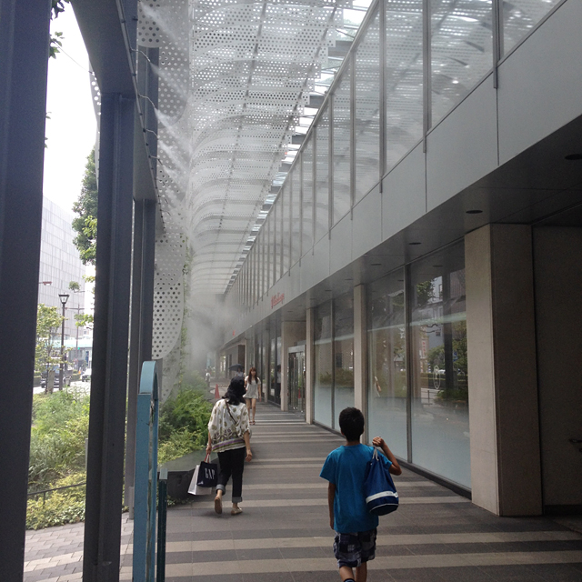 マンションの隣の方とエレベーターで一緒になったりするとなんでか天気の話しをしちゃいます。「今日も暑いですねー」とか「雨降りそうですねー」とか。イギリスでもそうらしいですが、他にそういうシチュエーションで話せるネタないですかね?無理に話すこともないのかもしれませんが、性格的に黙ってられない。ま、それはいいとして、先日二子玉川でランチしたときにデパートの周りで一斉にミストが噴射されて驚きました。そしていきなりグッと気温が下がった気がします。もちろん水代も電気代も設備費もデパート持ちだと思いますが、そういう心遣いに小売業を越えたサービス業としての心意気を感じました。
