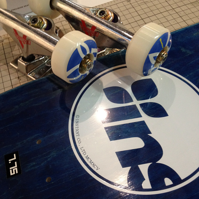 ブランクデッキってグラフィックのないデッキがあるのですが、グラフィックがないからみんな同じ木目のデッキに見えるけど、実はいろんな素材やサイズ、コンケーブがあるんです。インスタントではブランクデッキのコンプリートセットは「ビギナーコンプリートセット」としてご紹介しておりますが、こちらはサイズを7.5インチのデッキにてご用意しております。キッズや女子もいるからさ。でもインスタントではブランクデッキは7.5インチ、7.75インチ、8.0インチと3種類があります。7.5インチ以外のサイズもフルオーダーコンプリートセットにてご注文することもできますので、ぜひ試してみて下さい。インスタントでご提供させてもらっているコンプリートセットは信頼のパーツで組んでおりますが、それぞれのパーツのチョイスやサイズ、セッティングバランスなど、僕らの経験から全てに理由があるセッティング内容になってます。その理由は重要機密ですので詳細は店頭で聞いてもらえればご説明させていただきます。そしてインスタントのコンプリートセットにはすべてオリジナルデッキバッグとプロライダー陣が出演するハウツーDVDを無料でお付けしております。スケートボードを初めて手にした人がファーストステップで楽しさを感じてもらえるよう色々考えて見ました。