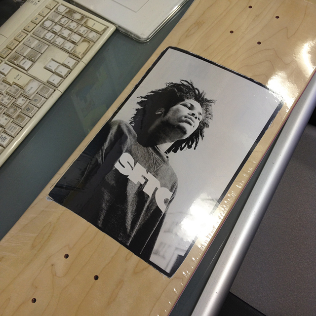 ショップに届いたこのデッキを見てハッとしましたよ。adidas SUPERSTARですよ。ブラック×ホワイトの。SFのスケートシーンを語る上で絶対に外す事ができないFTCとDRAKE JONESのコラボデッキ。これ激アツですねー。サイズも選べるから乗りたい気になる。Tシャツのグラフィックを変えてるのには最近気がつきました。さすがだ。