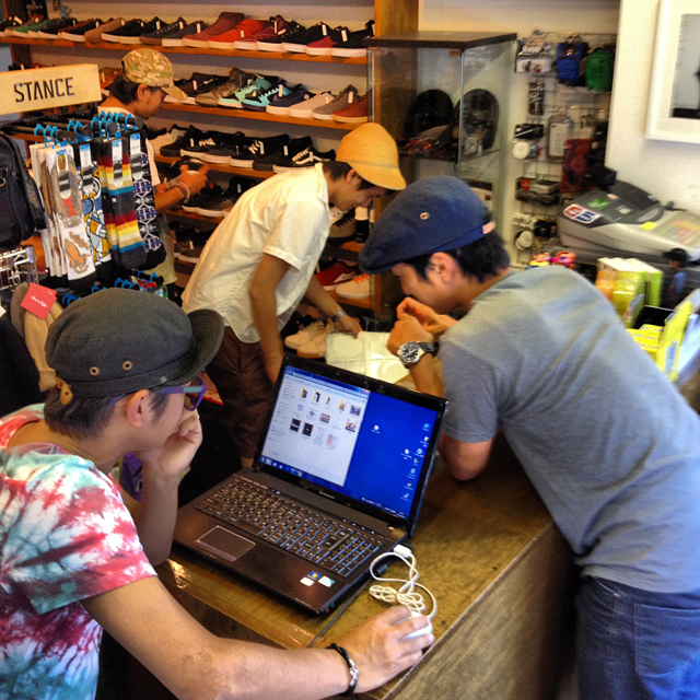 浦安ストアはタイミングでヒューマンスクランブルとなることが多いです。今回は非番の慶太に帰宅前に寄ってくれたクマにこれから滑りに行くアッキーに、寝坊して仕事いけず暇になった大河内くんやデッキを換えに来たマサらも合致してなんだか店内いっぱい居るぞ。混んでるぞ。ショップって本当に暇なときがあればこうやってギューギューになるタイミングもあって、そういう流れは読めそうで読めないの。そこがまた一期一会で楽しいのね。こういうミラクルなタイミングで集ったみんなでDVDみたりね。そういうのって普通なんだけど普通じゃないのよ。そういうタイミングをありがたいなって感じられるようになったのは40過ぎてから。おせー。