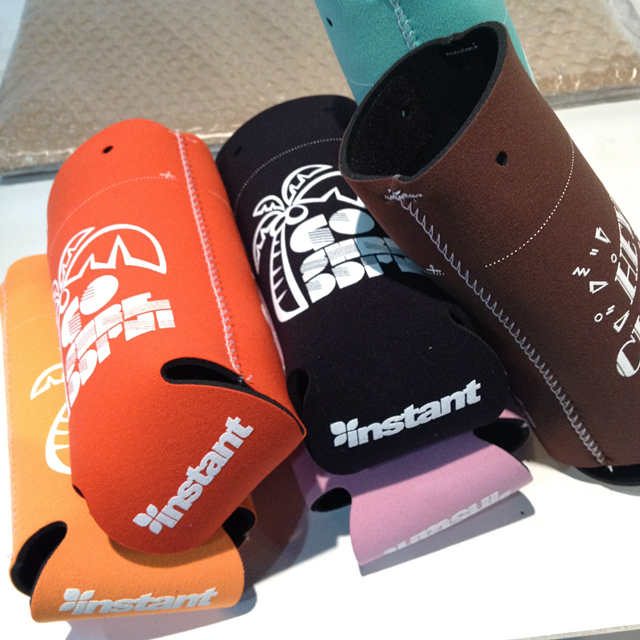 そしてこれ!ちょっとレイトなサマーにCOOZIEを作りました。デザイン原案はRAD龍でデザイン仕上げは茂呂さんであります。みんな40's。このクージーは500ml、350ml、ペットボトルどちらにも使えて薄手でかさばらない感じで作ってみました。良く見ると穴が4つ開いてます。これは慶太アイデアでスケートボーダーならみんなもってるシューズの買え紐を通して、携帯やデジカメや財布を入れて持ち歩けるポーチに変身。しかもそうやって使うことを生産してくれた松川さんに話したら、生地が伸びないようにピッチリと裏地を当ててくれてかなりしっかり使えるようになっております。ぶっちゃけもう夏もお盆を過ぎましたので少量生産でのご提供となります。840円。浦安、吉祥寺ストアにチョロッとだけあるのでぜひチェックしてみてください。僕はブラウンが気に入って使ってます。クージーは室内での使用もペットボトルの水滴防止にけっこう使えます。すっごい重宝しております。