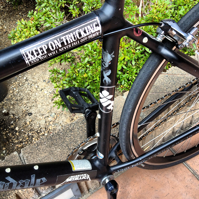 日中はまだエアコンですが、朝晩は気持ち良い風が吹くときがあります。気が付けば真夏のチャリ通勤も季節が変わりだいぶ楽になってきました。ま、片道20分で記録更新な距離なので体力的にはまだまだ余る感じなんですが、ゴール後のポタポタ感は夏でも冬でもあんまり変わらない気がします。チャリもだいぶ経て来ました。ステッカーにも味が出て、そろそろメンテナンスしないとね。最近は雨予報でも朝降ってなければチャリで行っちゃう。サトルなんてプッシュで出勤しちゃうからね。すげえよ。30分プッシュ。