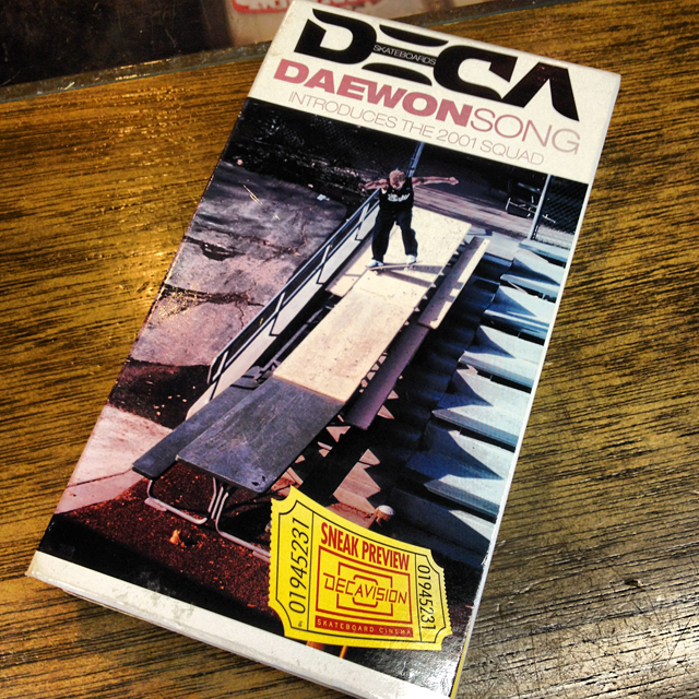 で、ショップには新旧様々なスケビがあるんですが、たまに手が空いたときに見たくなるタイトルがいっぱいあります。その日の気分や思い付きでだいぶ変わってきますが、今回はDECA。このデーオンのパッケージもかなりキャッチーですが、内容もまた特濃なんでありますよ。なんかみんなパイオニアだなあ、ってしみじみ感じてしまいました。僕は結構「オリジナル」とか「パイオニア」ってのに弱くてね。世の中の常としてもう完全なるオリジナルなどないってことも重々承知で居てもスタイルやアイテムやアートに漂うオリジナル感が大好きなのね。グッときます。VHSもいまはまだ見れるハードがあるけど、そろそろなくなってしまうかもね。PLANBやH-STREETやPOWELLやSANTACRUZなどなど、一時復刻ブームがありましたが、また90年代中期から後期のタイトルで復刻ブームこないかね。WORLD全集やTHRASHER全集やGIRL全集もグッと来たけど、メジャーじゃないところのも復刻されるとたのしいね。ATMとかさ。それともう完全なBOXセットね。BEST版も含めて411のブルーレイ全集とか、TWS全集とかさ。特にTWS全集は熱望してます。出たら間違いなく買う。
