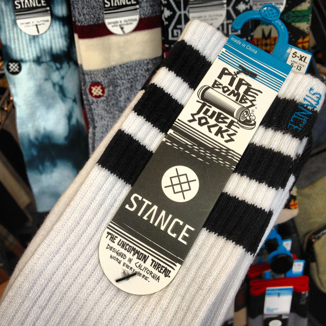 さらにこれからの季節に重宝するのがこのチューブソックスです。CRIS COLEやLIZARD KINGらをサポートするソックスブランド「STANCE」の新作が店頭にずらっと並びました。今シーズンからはこちらのチューブソックスがリリースされましたが、履いてるライダーみたらJJですからね。JASON JESSEE履いてるなら、って人いっぱい居るでしょ?僕もそうだし。