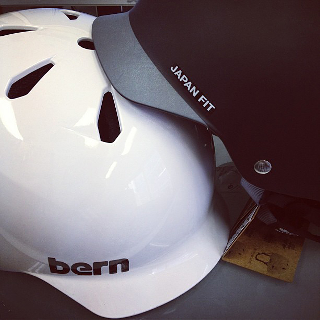 そして浦安ストアにも吉祥寺ストアにもこちらのbernのヘルメットがズラッと並んでおります。ビビッドなカラーもあって、サイズもS~XXLまでフルラインナップ。ヘルメットってけっこう「なんでもいい」って人が多いのですが、この辺もやっぱり色々違いがあるんですよ。例えばこちらのbernヘルメットは「JAPAN FIT」なんです。コーカソイドとモンゴロイドはもう完全に骨格が違う。頭の形がコーカソイドは前後に長い感じでモンゴロイドは丸っぽいの。アメリカのメーカーはもちろんラストを作る時に参考にするのがコーカソイドの骨格や特徴なので、どうしてもモンゴロイドには合わない部分が出てきます。シューズも同じで、日本人に多い「コウダカダンビロ」と言われる甲に厚みがあって幅の広い足型はコーカソイドには少ない特徴。逆にコーカソイドは薄い甲で幅が狭く、足の指では親指が一番先に出る感じね。モンゴロイドは中指が先に出るケースが多いのです。おっと脱線が果てしなく続きそう。なのでこのへんで。このbernは日本人にもフィットする形状にしてあるので、かなりの人がピタッと気持ちよくかぶれるはずです。全サイズストックがありますので店頭でお試し下さい。