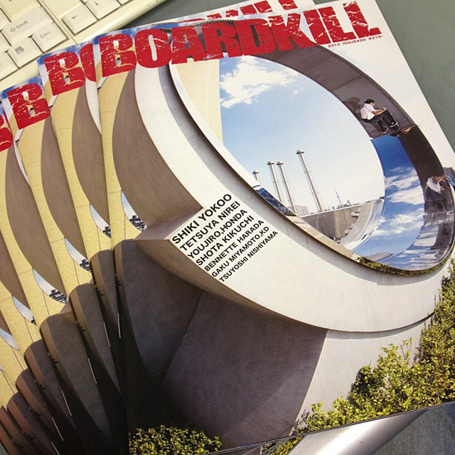 そして届いたBOARDKILLはマコトが表紙でありました。すげえなあ。どんどん世代が変わっていく。スラちゃんもノーズブラント乗ったみたいだし、本当にスケートシーンの層が広がってスケートボードの楽しさに深みが出てきたと思います。もっともっとスケートボードを楽しむ年齢層が広がって、あちこちにパークができてスケートボードを取り巻く環境が良くなっていって欲しいです。野球少年やサッカー小僧がプロ選手に憧れるようにプロライダー達が認知されるシーンになって欲しい。スケートボードってトップ選手になることはすっごく難しいことなのに、選手寿命もすごく短い。常に自分越えの自分試しで危険と背中合わせの選手生活。やっぱりまだまだマイナースポーツなのか。いや、もともとスケートボードはスポーツとは言い難い部分があるのでこれくらいが適度なのか?年を取ると色々考えてしまいます。僕の思いはスケートボードが大好きな人が少しでもいい環境でのびのび楽しめる状況になって欲しい。まだ先輩方に比べれば27年の短いスケートライフではありますが、やっぱりスケートボードの側に居た仲間達の方が気持ちよく素晴らしい人が多い。それは間違いない事実ですので、これからも胸張ってスケートボードをおすすめします。
