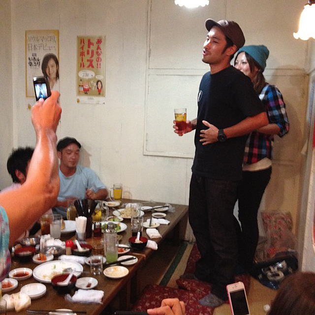 週末はSITAMATIの中国と呼ばれる名店で、奥村竜一a.k.a.オックンの送別会が開催されました。SITAMATIタマちゃんの呼びかけでゆかりのメンツがゴソッと集まって、飲めや歌えやの大宴会。おっくんはつい最近上京してきたと思ったらもうすでに8年経ってたんですね。時間の流れって速かったり遅かったり、なんで感じ方にこれほど違いが出るんでしょうか?引っ越しても東のSITAMATI、西のSITAMATIとして共にスケートシーンを盛り上げていきたいね。ご健勝を祈っております。この会にはたくさんの人が集まりましたがSSPローカルにライダー仲間、こんな3ショットも珍しいでしょ?クマ、てっちゃん、マサトモです。