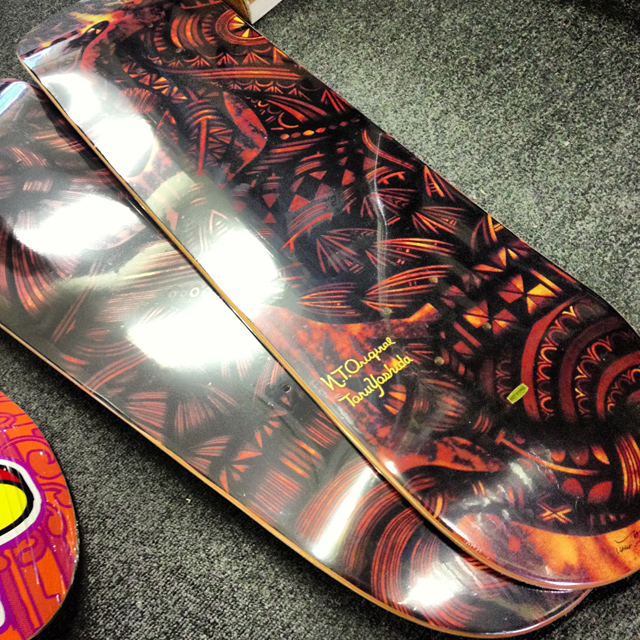 で、こちらが待望のn.t.originalの最新モデル。なんと出ました!吉田徹のシグニチャーモデルがリリースになります!!吉田徹7.75インチ、チームモデル8.0インチで、二枚で完成する一航氏のグラフィック。個人的に吉田徹ファンなのでこれはまたグッときちゃうのであります。こちらもぜひデッキをチェックしてもらいたい。吉祥寺ストアにも浦安ストアにもどちらも並んでおりますのでじっくり見に来てください。WEBの更新も急ぎます!