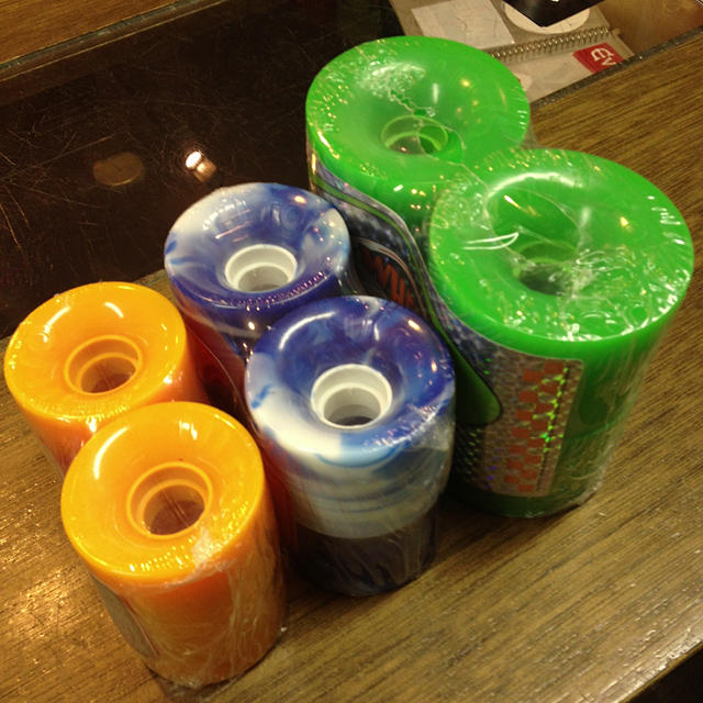 先日、気の合う仲間たちと「第二回下町食い倒れクルーズツアー」に行ってきました。この企画は開催されることがまずミラクルです。簡単に説明すると、いい年した仲間たちとクルーズデッキでちょっと美味いものでも食べいこか、的な企画なんですが、大人になるとまず全員のスケジュール合わせから始まって、ルートや立ち寄りスポットなど色々と詰め込んでギューッと考えた割にはしょっぱなからすでにガンガン飲んじゃって予定とかまったく合わなくなっても楽しいからみんなでプラプラしちゃうって感じですかね。僕とRAD龍はSKATEBOARDの新しい楽しみ方を常に考察しておりますが、このクルーズツアーは実に楽しめるスケートボードですので大人の皆さんはぜひ。今回も林くんが最年少で平均年齢は完全にアラフォーじゃないかな?全員スケートボード。全員フルプッシュ。今回の食い倒れツアーはかなり壮大なツアーになりましたので、また別にご紹介させていただく予定です。おっと前置きが長くなりましたが、その食い倒れツアーで人気のウィールがこちらのOJ3 HOTJUICE。60mmをみんな使ってますが、最近小さ目の56mmと大き目の72mm。どちらも素敵ですが僕はやっぱり60mm。長距離をプッシュするとこの良さがわかるよ。