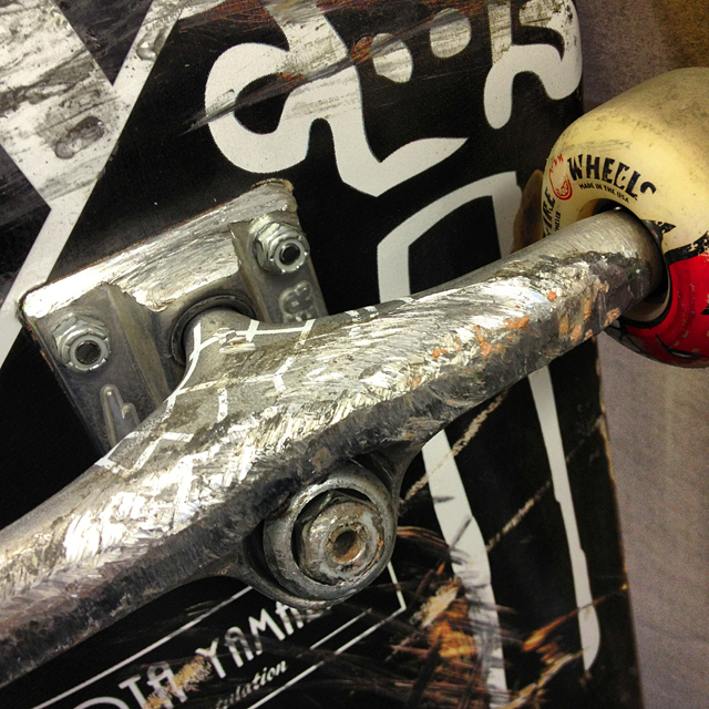 THUNDERと言えばinstantsケントがかなりのTHUNDER男であります。トラックって本当に削れ方で乗り手の好きなトリックやスタイルまでわかる気がして、僕は初めて会うスケートボーダーはまずシューズ、そしてデッキの擦れ具合、さらにトラックの削れ具合をよく見ます。たまに超ビビることがあって聞いてみるとスタンス逆の友達にもらったトラックだったりしてね。スケートボードってうそがないから好き。