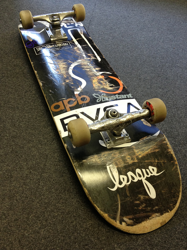 ケントのセッティングはこんな感じ。デッキはLesqueの8.25インチですよ。ずっとこのショウタモデル乗ってます。8.25。本人もこのサイズ乗ってるって。ケントとは出会った時から大き目デッキに乗ってました。ハワイではやっぱりUSシーンと同じ流れだろうから自然にぴったりくるサイズが似てくるんだろうね。そうそう。ケントは来月横浜ベイサイドで開催されるフラットバンクコンテストに参加することが決まりました。instantsからはカッツンも出場する予定。このイベントはまた詳細入ってきたらご報告しますね。なんだか激アツの夜になりそうです。デッキは8.25インチで一時THUNDERも149を使っていたことがありますが、このサイズだとケントは実によくトラックを折ってくる。ピポット辺りやハンガーがもうパッキリ折れちゃうの。なんどかそれが続いて147にサイズを変更してみたらピタッと折れなくなったのね。なので最近はずっと147。経験からくるセッティング。