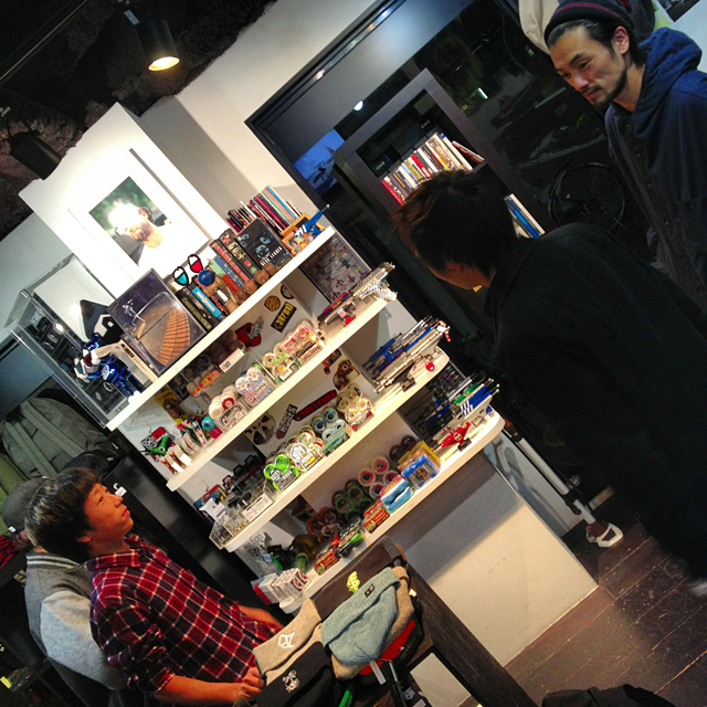 吉祥寺ストアは学生から年配の方も親子連れもいっぱい来ます。ありがたいことです。学生たちはスケートボードを始めてからの成長をずっと見てますから、話していると本当に楽しいね。サトル店長の的確なアドバイスは実際に滑る人の助けになるかと思います。セッティングやトリックでご質問ある方はどしどし聞いてみてください!