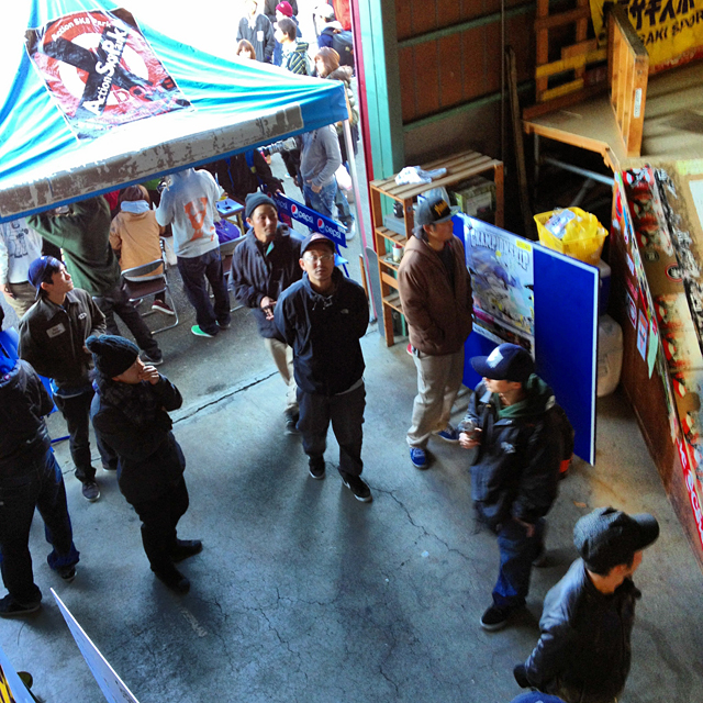 そして朝からこの面子。伊藤社長率いる夜遊び工務店の幹部たち。この面子はコンテストひやかし隊ですから相当気合い入ってます。おっと、ダイちゃんはスチル、マサトモはビデオ、って役割もありますが、伊藤ちゃんとタチくんは完全に遊びに来てました。でも一番声出てたしアツかったよ。さすがだ。ちなみにペイさん(林プロ)は夜遊び工務店の社員じゃありません。