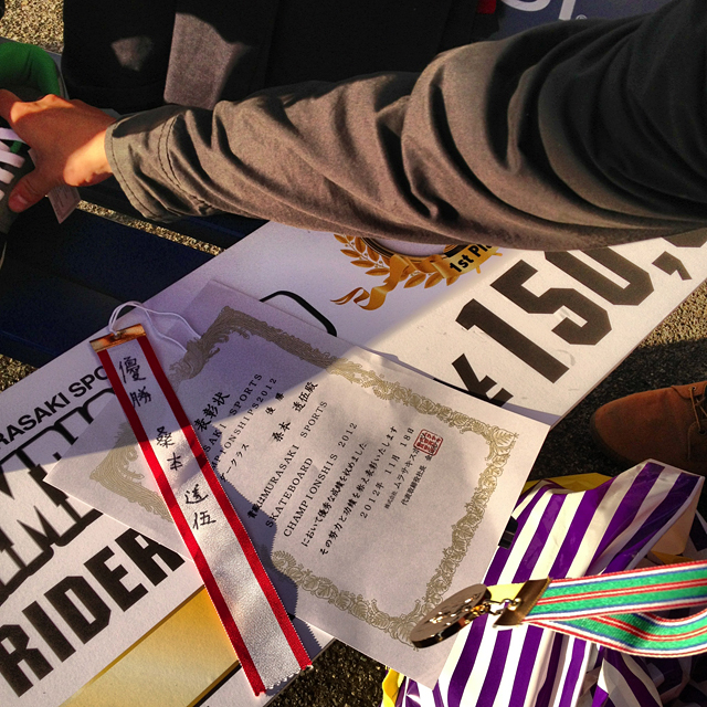 この面子の中ユウトは3位でした。大健闘。結果的にはローカル勢が上位になりましたが実力はみんなかなり僅差と見ました。コンテスト終わった後、ユウトは「マックツィストやるの忘れた」って言ってて笑いました。そういうところにスケートボウ道を感じてしまいます。