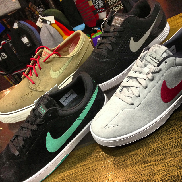 店頭にはNIKE SBの新作がズラッと到着しております。今回はかなりオススメばかり。まずなんといってもこちらのPRETTY SWEETでコストンが履いていたblack/mintが素敵です。僕もぜったい買っちゃいそう。薄めのグレーもかなり素敵。チノパンとかに合わせると良い感じよね。ま、KOSTON1はとにかく履きやすくスケートしやすいと評判です。また、PROD6のNEWカラーもおすすめ。意外となかったベーシックカラーのブラック/チャコール。これマジで定番中の定番。どんな格好にもビチっとはまります。履いて驚くのがその軽さとクッションの良さ。しかもブニョブニョはしないからスケートには完璧ね。KOSTON1もPROD6もステッチがありますがつま先にはオーバーレイがない最近主流のデザインです。スケートシューズって素材からかなり耐久性が高いものを使ってますが、NIKE SBはなんだか素材の強度がすごい高いと感じます。DCも「SUPER SUEDE」とプッシュしてますが、素材の耐久性ではこのNIKE SB、あとEMERICAなどが評判いいです。
