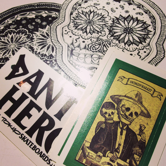吉祥寺ストアに寄ったらサトルにステッカーを分けてもらいました。ステッカーって本当に色んな種類があって貼るのがもったいないものもいっぱいあります。僕はステッカー箱があってそこに大事なステッカーを入れております。押入れの引き出しがいっぱいになって移し変えたんですが、そのときにだいぶステッカーあげたり貼ったりして今思えばとっておけばよかった、と思うものがいっぱいです。ま、とっておいても結局はジコマンなだけなんですが、なんでかステッカーって日記な感じして取っておきたくなってしまうのよ。そして基本増える一方で減ることはまれ。ステッカー1枚で当時のシーンを振り返れるのが魅力です。