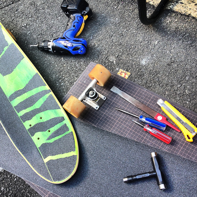 なんだかクルーズのデッキテープが浮いちゃうので貼り換えました。縦線一本から面倒なので浮いたデッキテープを剥がしてちぎって貼ってたら小さいピースも微妙に浮いてる。そういうの気持ち良くないんで全部剥がして貼り直し。やっぱりいいね。気持ち良い。今回は前日に会ったヤナさんインスパイアでノーズ側をもったときに指がざきざきにならないように開けました。けっこう小さい労力で絶大な効果です。クルーズにぜひ。