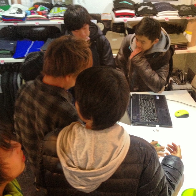吉祥寺ストアでは学校帰りの学生達に間でかなりフィンガーボードが流行っておりまして、もう毎日トリック自慢が開催されております。「お客さまがいらしたらカウンター前をあけること」、「ギャーギャー騒がないこと」、など色んな約束がありますが、この日にはじめてきた人も居るし、盛り上がっちゃうとどうしても、ね。でもシンノスケのフリップFS5-0がかなりの完成度でちょっとおじさん驚きました。基本アイドルタイムのお祭りなので個人的には寂しくなくて大歓迎。たまにピシャッとすることもありますが。